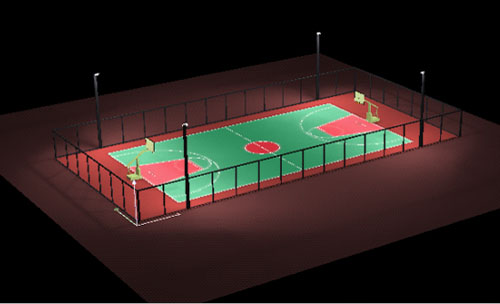 籃球館照明燈,籃球場館專用燈 室外籃球場照明燈具宜采用:兩側(cè)布置、四角布置、混合布置。  室外籃球場燈具布置規(guī)定簡述有七點:  其一,布燈桿方