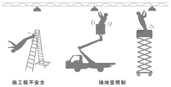 懸掛式燈具傳統(tǒng)維修方式:采用升降車或搭架子等方式,不僅人員極不安全,經(jīng)常發(fā)生高空墜落事故,而且勞動(dòng)時(shí)間長(zhǎng),勞動(dòng)強(qiáng)度大。采用燈具升降器后,維修人員無(wú)需再登高作業(yè),在地面解決了安全維修的問(wèn)題。 節(jié)約了維修成本。過(guò)去維修燈具要多人造作,安裝升降器后,兩人輕松操作,維護(hù)人工成本降低60%以上。 安裝燈具升降器后隨時(shí)可以對(duì)燈具進(jìn)行維護(hù),無(wú)須停電停產(chǎn),保證正常用燈。 |