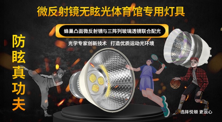 無影高清高均勻光,防眩增效,比賽場地50°夾角內(nèi)零眩光,見光不見燈,光效相對傳統(tǒng)LED燈具提高50%以上,光線定向精準(zhǔn),在高大空間籃球館、網(wǎng)球館、羽毛球館、乒乓球館、冰球館、手球管等綜合球館照明應(yīng)用中均有卓越表現(xiàn)!