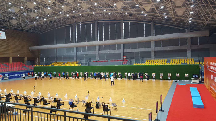 第十一屆全國少數(shù)民族運(yùn)動(dòng)會(huì)射弩會(huì)場選用悅頓系列比賽級別防眩燈 射弩場地應(yīng)平坦、開闊,室內(nèi)、室外均可。長不少于30米,寬度可根據(jù)所設(shè)靶位數(shù)酌定。 一次比賽應(yīng)在同一個(gè)場地進(jìn)行,特殊情況下,可經(jīng)競賽委員會(huì)批準(zhǔn)在不同場地進(jìn)行,一個(gè)項(xiàng)目必須在同一個(gè)場地進(jìn)行。 室外場地在室外場地比賽時(shí),發(fā)射方向應(yīng)避免陽光直射。 室外場地必須提供下列設(shè)施 設(shè)有運(yùn)動(dòng)員、裁判員和比賽工作人員免受日曬和雨淋的設(shè)施。每個(gè)箭靶上方設(shè)置示風(fēng)旗,旗用輕質(zhì)材料制成,矩形尺寸為5厘米×20厘米。箭靶后方設(shè)置箭擋或留有安全地帶。成績公告欄。場地周圍設(shè)置安全警戒標(biāo)志。 室內(nèi)場地 室內(nèi)比賽場地必須達(dá)到需要的照明水平,全場光照均勻,不得低于 300勒克斯,靶面光照至少1000勒克斯,靶后背景為不反光的中性顏色,不得設(shè)置其他標(biāo)志物。