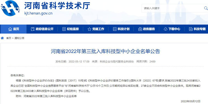 2021年5月12日,河南省科學技術廳發(fā)布《河南省2022年第三批入庫科技型中小企業(yè)名單公告》,并在“全國科技型中小企業(yè)信息服務平臺”公示10個工作日。作為深耕體育照明領域的鄭州銘泰偉業(yè)電子有限公司 ,始終堅持創(chuàng)新賦能,深入實施創(chuàng)新驅(qū)動發(fā)展戰(zhàn)略 , 憑借突出的科技創(chuàng)新突破成功入庫。入庫編號: 20224101050000750